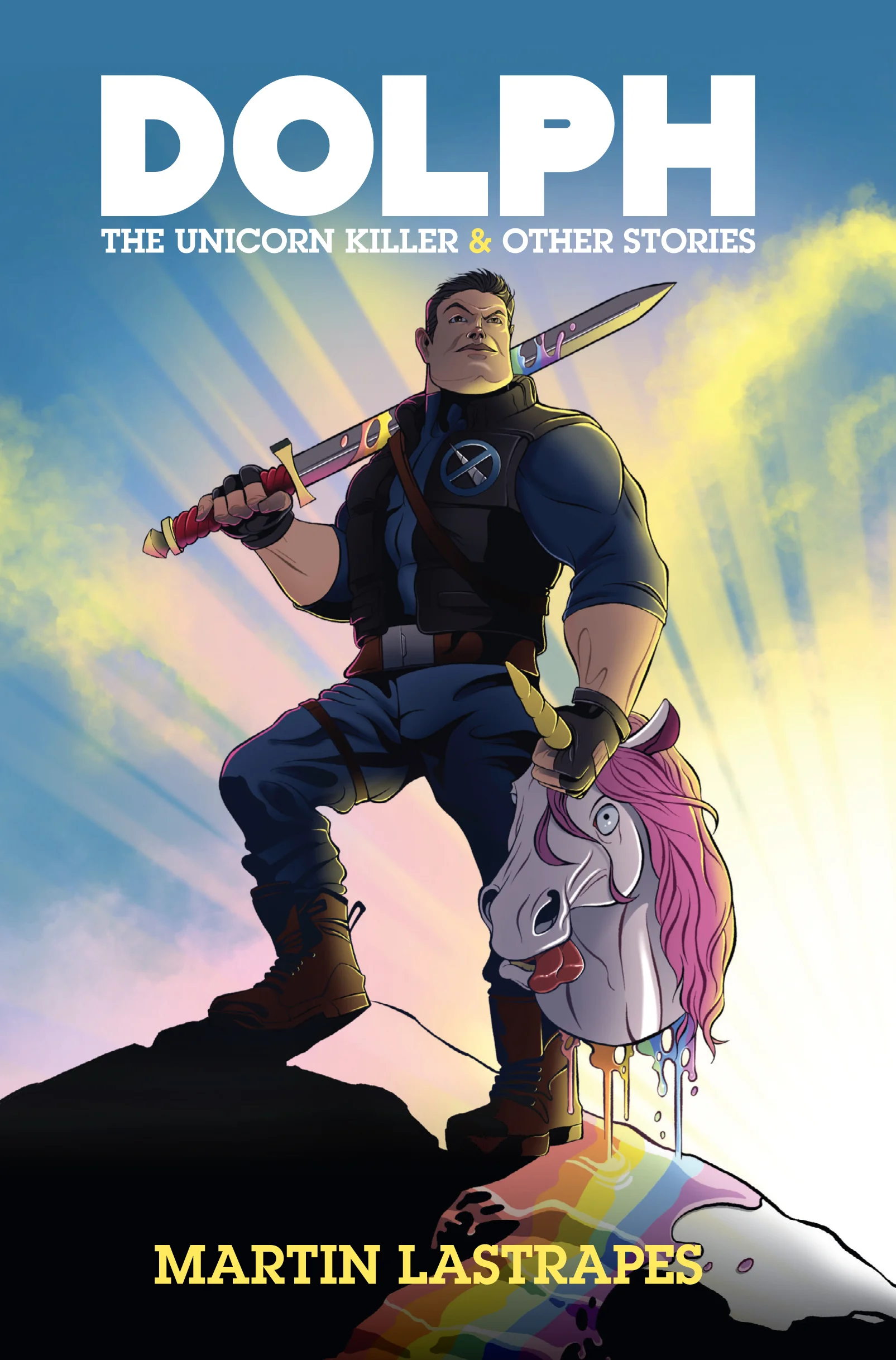 Wait, seriously? You want book info? Did you see the title? It's called Dolph the Unicorn Killer & Other Stories. Did you see the cover? Because that's Dolph. Look at that guy. Look at his biceps! Look at that decapitated unicorn head with its freshet of rainbow blood.